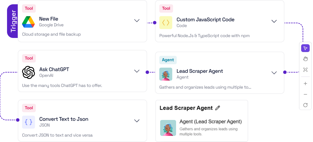 Drag-and-drop workflows with AI-powered decisions.